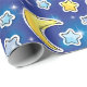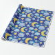 Ein Kind Niedlicher und farbenfroher Himmlischer blauer Himmel, Gemustert in gelben Sternen und Mond