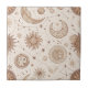 Elegante himmlische Keramikfliese mit botanischem Muster mit Monden, Sternen, Planeten, mystischen Augen und zarten blättrigen Zweigen in einem minimalistischen Schwarz-Weiß-Stil. Ideal für Astrologie-Liebhaber, spirituelle Suchende, Naturliebhaber und jeden, der boho-himmlische Ästhetik liebt.