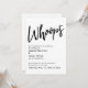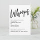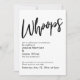 Diese Suite zeichnet sich durch den fett gedruckten, lässigen Schriftart handgeschriebener Skripte aus, der für Akzent-Sätze verwendet wird. Wenn Sie Ihre Hochzeitsgäste darüber informieren müssen, dass Sie Ihr großes Datum ändern mussten, dann gibt es hier eine humorvolle Option. In diesem Stück wurde der handgeschriebene Skript-Schriftart verwendet, um eine einfache Grafik zu erstellen, die das Wort "Whoops" abbildet. Verwenden Sie die Vorlagenfelder, um Ihre persönlichen Daten hinzuzufügen und dieses moderne Design zu Ihrem eigenen zu machen. Der weiße Hintergrund kann in eine beliebige Farbe geändert werden. Bitte kontaktieren Sie uns für spezielle Anfragen oder für individuelle Betreuung. 105 //