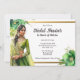 Eine wunderschöne indische Aquarellbraut trägt ein grünes Brautkleid mit goldenen Imitaten und hat große hängende dekorative Ohrringe. Ihr langes Haar kaskadiert sich über die Schultern und sie schaut zur Seite. In den oberen und unteren rechten Ecken sind Single große grüne Blume und die oberen und unteren Rand haben ein Imitat Gold Band über sie. Schwarze Vorlagen erscheinen zu ihrem Recht für Ihre benutzerdefinierte Formulierung. Dieses Design ist ideal für elegante, einfache florale oder botanische grün und Imitate goldenen Brautpartys. Sie können den Hintergrund und die Farbe des Schriftartes in eine beliebige Farbe ändern, um Ihren besondere Anlass zu Anzug zu bringen.