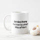 "Hinter jedem Knitter steckt ein riesiger Keil aus dem Garn" ist ein humorvolles, aber wahrheitsgetreues Sprichwort für alle Strickerinnen, die sich ihrer Handwerkskunst widmen. Schwarze Schrift. Weiße Tasse. 325 ml