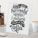 Dieses Kaffeezeichen zeigt eine kokuläre Handschrift, die besagt: "Hinter jeder erfolgreichen Frau liegt eine Menge Kaffee" in schwarz auf weißem Hintergrund. Die Schrift enthält dekorative Wimpern und dekorative Wirbel.