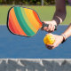Hintergrund der bunten Bögen Pickleball Schläger