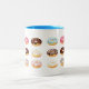 Hintergrund der farbenfrohen Donuts Zweifarbige Tasse