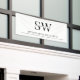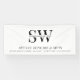 Minimalistisches schwarz-weißes Business Promotional Backdrop Banner mit Platz für Ihr Monogramm oder Logo, Firmennamen, Tagline und individuellem Text. Erstellen Sie mit diesem einfachen, aber eleganten Banner-Design Markenbanner für Ihren Handwerksstand, Ihren Pop-up-Shop oder Ihre Boutique. Wählen Sie aus Outdoor- oder Indoor-Bannerware und erstellen Sie Ihr individuelles Shopbanner.