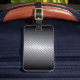 Hintergrund der schwarz-glänzenden Stahltafel Gepäckanhänger