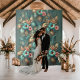 Eine raffinierte und luxuriöse Hochzeitskulisse mit tropischer Eleganz. Mit exquisiten Blumenarrangements mit zarten Orchideen, Hibiskus und Plumeria, nahtlos in einem raffinierten Design arrangiert. Feine Perlessenzmuster verstärken die opulente Ästhetik und schaffen ein anmutiges und romantisches Ambiente. Dieser Rahmen strahlt einen zeitlosen tropischen Charme aus, der perfekt für eine elegante und unvergessliche Hochzeitslandschaft ist.