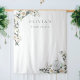 Herbst in Liebe mit diesem ätherischen botanischen Design für Herbst-Brautpartys, Probe-Dinners, Hochzeiten oder Verlobungen. Das elegante Design besticht durch einen weißen Wasserfarbenkürbis, der mit den Initialen des Paares beschriftet und von weißen Blume, grünem Blattwerk und Eukalyptus-Blätter flankiert ist. Personalisieren Sie diese Foto-Umgebung mit zwei Zeilen benutzerdefinierten Text.