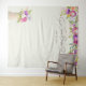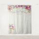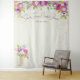 Elegante botanische Aquarellfloralen auf einem Elfenbeinhintergrund mit Rosa. Die Frühlingsfloralen sind ranunculus, Rose, Anemone und Iris. An einer Ecke befindet sich eine Säule aus Imitaten mit einem Strauß derselben Blume. Im oberen Teil befindet sich eine Sprinklerei von Funkellicht. Text ist in mittlerem lila Farbton. Passen Sie alle Texte, Schriftart, Farben, Größen an oder fügen Sie einfach Ihre Personalisierungen hinzu.