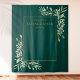 Mit zarten Aquarellfarben-Blätter auf smaragdgrünem Hintergrund kann diese schicke Brautparty Foto Kulisse mit dem Namen der Braut und dem besonderen Datum personalisiert werden. Entwickelt von Thisisnotme©