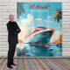Farbenfrohe tropische Schiffskulisse mit personalisiertem Text für Ihre Hochzeitsfotos oder Firmenveranstaltungen. Ändern Sie den Text auf alles, was Sie wollen, wenn Sie bestellen.