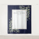 Mit zarten Aquarellfarben-Blätter auf marineblau-blauem Hintergrund kann diese schicke Brautparty Foto Kulisse mit dem Namen der Braut und dem besonderen Datum personalisiert werden. Entwickelt von Thisisnotme©