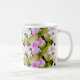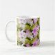 Hintergrund des rosafarbenen, grünen Blumenmusters Kaffeetasse