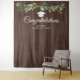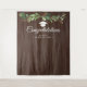 Eine wunderschöne Foto-Kulisse, um Ihrem Abschlussfeier etwas Extra hinzuzufügen. Dieses Design zeichnet sich durch eine Anordnung von grünen Aquarell Eukalyptus auf einem gemalten dunklen Holz und eine weiße und goldene Graduierung darunter. "Herzlichen Glückwunsch" ist in weißem kursiven Schriftart und Ihr Name und Ihre Klasse/Datum ist auch in weißen Sans Serif Schriftart.