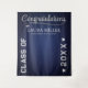Feiern Sie Ihren Absolvent mit diesem eleganten Custom Abschluss Backdrop in Marineblau und Silber. Es wurde als eine lustige Foto-Stütze-Kulisse konzipiert und bietet eine kühne Gratulationsbotschaft und personalisierte Details wie den Namen des Absolventen und das Jahr der Klasse. Ideal für unvergessliche Erinnerungen an diesem besonderen Tag!
