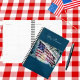 Dieses amerikanische Flaggenbild wird dagegen hervorgehoben, Feuerwerk platzt, in einer farbenfrohen Darstellung von rot, weiß, blau und gelb, Fackeln in einem wolkigen, dunkelblauen Himmel.