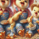 Stellen Sie sich ein skurriles Tapeten-Design vor, in dem eine Familie von Enten und Enten in winzigen, spielerischen Outfits gekleidet ist, darunter Jeans und farbenfrohe Hüte. Diese charmanten Figuren verteilen sich auf eine ruhige, natürliche Umgebung, vielleicht durch einen ruhigen Teich oder eine sonnige Wiese. Die erwachsenen Enten, mit ihren knöcheligen Hüten und angepassten Jeans, führen den Weg, während die Entenlinge, die in ihrer Miniatur genauso stilvoll sind, genau hinter sich folgen und glücklich waten. Der Hintergrund zeigt einen hellen, fröhlichen Tag mit einem weichen blauen Himmel, der mit flauschigen weißen Wolken übersät ist, und die Sonne strahlt ein warmes Licht über die Szene. Die Enten und Enten scheinen das perfekte Wetter zu genießen, sich zu sportlichen Aktivitäten wie dem Baden im Wasser, dem Spielen zwischen den Blume oder einfach nur in der Sonne zu entspannen. Die Farbpalette ist hell und gemütlich, die Pastelltöne ergänzen die helle Kleidung der Enten. Das Design ist spielerisch und liebenswert und bringt eine Touch von Spaß und Freude in jeden Raum, sodass es sich ideal für ein Kinderzimmer oder für jeden Bereich, der ein lustiges, lichtdurchflutetes Ambiente benötigt.