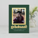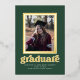 Diese stilvolle Abschluss-Einladung/Ankündigung verfügt über einen echten Folienrahmen um ein Single-Foto auf einem waldgrünen Hintergrund. Das Wort "Absolvent" ist auch Folie. Die Rückseite der Karte hat Platz für ein zweites Foto.