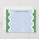 Die "Wavy Lines" Schreibwaren sind fett und hell und haben einen blauen und grünen Hintergrund mit einem einfachen, wellenförmigen Rahmen. Vergessen Sie nicht den koordinierenden Umschlag Aufkleber und das spiralgebundene Notebook.