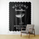 personalisierte Retro-Junggeselinnen-Abschied-Tapisserie in Schwarz und Weiß mit einem Cocktail-Glas ist perfekt als Junggeselinnen-Abschied Foto Hintergrund. Feiern Sie Ihr Brautparty stilvoll mit einem Cocktail-Party in fett rosa, dem Thema der nostalgischen Vintagen 70er-Braut und ihrer Brautjungfrauen.