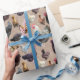 Eine Bildersammlung von Hühnern meiner Familie auf einem gemusterten Hintergrund.