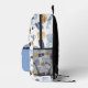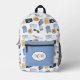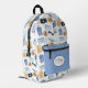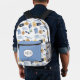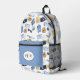 Der perfekte Rucksack für den Reisenden. Set auf weißem Hintergrund, dieses Muster hat ein Muster von mehreren Reiseelementen. Im Vordergrund befindet sich ein Reißverschluss mit dem Sie sich durch das Hinzufügen eines Monogramms und das Ändern der Farbe anpassen können.