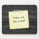 Gelbe Note mit Band auf dunkelgrauem Holzhintergrund. Text ist bearbeitbar.
