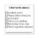 Diese selbstfarbige Briefmarke hat eine Vorlage. In der obersten Zeile steht eine Notiz von und hat zusätzlichen Text, der auf den Namen des Lehrers geändert werden kann. Die übrigen Zeilen des Anzeigetextes können bearbeitet werden, um benutzerdefinierte Nachrichten für Schüler und/oder Eltern anzuzeigen. Es gibt Checkboxen, um die entsprechende Nachricht zu beachten. Vorgeführt: Hervorragende Arbeit! Bitte befolgen Sie die Anweisungen Invollständiges Karo Ihrer Rechtschreibung Denken Sie daran, dass eine saubere Unterschrift für Eltern erforderlich ist