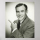 Geschäftsmann mit Finger zeigen, lächeln, (B&W), portrait | George Marks | AssetID: 57539328