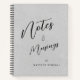 Grauer Hintergrund mit moderner Schriftzeichen "Notizen und Musings", um Ihre kreativen Ideen und Gedanken inspirieren, personalisiert mit Ihrem Namen auf der Vorderseite und Ihrem Monogramm mit dem Namen auf der Rückseite. Fügen Sie Ihre eigenen Informationen hinzu, indem Sie den Link "Diese Vorlage personalisieren" befolgen.
