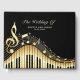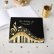 Schwarz-Gold-Illustration einer Musiktastatur mit Noten und goldfarbenen Sternen