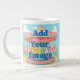 Add Your Image Jumbo Tasse Custom Foto Tasse Dies ist eine große blau-weiße Tasse, eine Jumbo-Tasse mit einem Platz auf jeder Seite für ein Bild. Auf der Tasse befinden sich zwei Karussell-Bildtexte hinzufügen, die durch Fotos ersetzt werden können. Wenn Sie auf die Schaltfläche Personalisieren klicken, können Sie auf Ersetzen klicken, um ein Bild hinzuzufügen. Dies ist eine Keramik-Tasse, die 20 Unzen hält. Die Tasse kann mit Ihren Fotos oder Grafik-Designs gedruckt werden. Die Tasse ist mit Mikrowelle und Geschirrspüler ausgestattet. Diese Jumbo-Tasse erfüllen die FDA-Anforderungen für die Lebensmittel- und Getränkehaftigkeit. Diese personalisierten Kaffeetassen werden perfekte Geschenke für Freunde, Familie und Mitarbeiter machen.