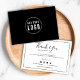 Dieses Dankeschön-Karte hat einen schwarzen Rechteck-Rand gegen eine weiße Hintergrundfarbe auf der Vorderseite. Auf der Rückseite können Sie Ihr Logo mit einer bearbeitbaren Hintergrundfarbe hinzufügen (klicken Sie auf Anpassen und ändern Sie die Hintergrundfarbe).