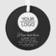 Fügen Sie Ihr Logo mit der Werbeaktion Black Holiday Ornament Custom Text Company. Fügen Sie Ihr Logo in die Vorlage ein und passen Sie den Text, den Firmennamen, die Adresse und die Kontaktinformationen auf der Vorder- und Rückseite an. Werbeaktion oder Schenkung für Ihre Kunden und Geschäftspartner.