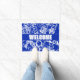 Hinzufügen einer Textsammlung in Blau und Weiß Fußmatte