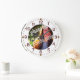 Diese lustige benutzerdefinierte Wanduhr ist perfekt für Ihr Lieblingsbild. Es gibt einen Bereich in der Mitte, in dem Sie Ihr eigenes Foto hinzufügen können. Ersetzen Sie einfach das Beispielbild in der Vorlage mit Ihrem eigenen. Die Uhr hat für die Minuten und Stunden braune Punkte und auf weißem Hintergrund braune Zahlen. Klicken Sie auf Anpassen, um den Stil oder die Farbe des Schriftartes der Zahlen zu ändern, wenn Sie gewollt haben, die Uhr anzupassen. Weitere benutzerdefinierte Wanduhren an Alinas Stift.