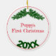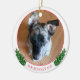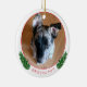 Feiern Sie die ersten Weihnachten Ihres Welpen mit einem bezaubernden Ornament mit einem persönlichen Foto auf der Vorderseite und Details auf der Rückseite. Ein quadratisches Foto wird am besten funktionieren. Passen Sie die Details in den Vorlagenfeldern für die Meldung auf der Rückseite an.
