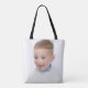 Personalisieren Sie diese Tote-Tasche mit jedem Foto vorne und hinten. Dieser Sample-Tote-Sack hat ein Baby-Foto auf der Vorderseite und ein älteres Kind auf der Rückseite, aber natürlich ist jedes Thema des Fotos für Sie zu wählen.