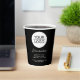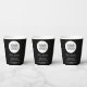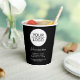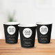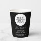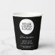 Fügen Sie Ihr Logo mit der Werbeaktion Black Paper Cups für eine benutzerdefinierte Textfirma hinzu. Fügen Sie Ihr Logo in die Vorlage ein und passen Sie den Text, den Firmennamen, die Adresse und die Kontaktinformationen an. Werbeaktion oder Schenkung für Ihre Kunden und Geschäftspartner.