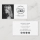 Fügen Sie Ihr Logo moderne Minimalistische Foto Schwarz-Weiß-Visitenkarte. Perfekt schlichtes Design für Ihre Unternehmens- oder Geschäftsidentität. Personalisieren Sie dieses maßgeschneiderte Design mit Ihrem eigenen Logo und Details. Ordnen Sie die Symbole der sozialen Medien um oder fügen Sie Ihre eigenen hinzu.
