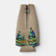 Rustikales Add Logo Custom Text Weihnachtsbaum Customer Holiday Flasche Cooler. Rustikal beige Hintergrund und Aquarell farbenfroher Weihnachtsbaum. Fügen Sie Ihr Logo in die Vorlage ein und passen Sie den Text, den Firmennamen, die Adresse und die Kontaktinformationen im Inneren an. Werbeaktion oder Schenkung für Ihre Kunden und Geschäftspartner.