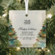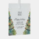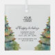 Fügen Sie Ihr Logo Custom Text Weihnachtsbaum Werbeaktion Glass Ornament. Aquarellfarbener Weihnachtsbaum. Fügen Sie Ihr Logo in die Vorlage ein und passen Sie den Text, den Firmennamen, die Adresse und die Kontaktinformationen auf der Vorder- und Rückseite an. Werbeaktion oder Schenkung für Ihre Kunden und Geschäftspartner.