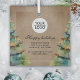 Rustikales Hinzufügen Ihres Logos Custom Text Weihnachtsbaum Werbeaktion Glas Ornament. Rustikal beige Hintergrund und Aquarell farbenfroher Weihnachtsbaum. Fügen Sie Ihr Logo in die Vorlage ein und passen Sie den Text, den Firmennamen, die Adresse und die Kontaktinformationen auf der Vorder- und Rückseite an. Werbeaktion oder Schenkung für Ihre Kunden und Geschäftspartner.