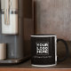 Laden Sie Ihr eigenes Logo (oder ein anderes Bild) hoch, um eine coole und moderne schwarze Tasse mit einer persönlichen Touch zu erstellen. Sie können die Farbe der Tasse ändern (anpassen), um sie Ihrem Logo anzupassen.. Fügen Sie Namen und einige Wörter hinzu... eine elegante und stilvolle personalisierte Geschenkidee für jedermann, aber vor allem, um eine Marke zu fördern