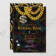 A hip hop 90's style gold Cuban link chain and opaque graffiti background birthday party invitation design perfect for birthday parties with a hip hop theme. Customize this hip hop birthday invitation with your text. Hand drawn Cuban link chain and accessories on a black background.