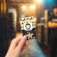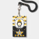Niedlicher VIP oder VIB Pass beinhaltet Pinguin in schwarzer Sonnenbrille, gelben rückwärts Baseballhut und Fliegengoldkette auf einem gelben, braunen, schwarzen, weißen und grauen Farbschema mit Diamanthintergrund. Herzlichen Glückwunsch zum Geburtstag gelber, kursiver Text auf der Rückseite mit eigenem Foto und Text. Passen Sie sich mit dem eigenen Initial und Namen Ihres Kindes an. ©2022 Miss Sassy Party Designs