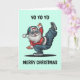 Freuen Sie sich auf feierlichen Beifall mit Stil. Diese einzigartige Weihnachtskarte zeigt einen super coolen, angesagten Weihnachtsmann, der eine lustige Pose erweckt - einen Fuß auf dem Boden, den anderen in der Luft - so wie er bereit ist, einen Urlaubsmoment abzugeben. Vollkommen mit dem spielerischen Satz "Yo Yo Yo Merry Christmas", ist diese Karte perfekt für jeden, der eine moderne, sonderbare Drehung an den Ferien Lieben. Ideal für Freunde, Familien oder alle, die ein wenig Spaß in den Grüße ihrer Saison schätzen.