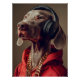 Hip Hop Weimaraner with Headphones & Gold Chain Poster