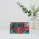 Glamping Böhmische Hippie aquamarine, rote berufliche Visitenkarten. Niedliche Travel Trailer Vintagen sechziger Blumenvorhänge auf der Rückseite. Trendy, antik, Retro, cool, chic, groovy. Einzigartiges Wohnmobil-Design. Bildrecht Marg Seregelyi Fotografie.