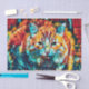 Boho orange aquamarinen blauen bunt, psychedelisch, hippie tabby kitty Katzenkatze decoupage Tissue Papier. Cooles, modernes, trendiges, fröhliches böhmisches Design. Wunderschöne Foto-Kunstgeschenk-Verpackung für Ihre Geburtstagsparty. Suchen Sie nach passenden Produkten in meiner Shop-Kollektion. Image Copywrite Marg Seregelyi Fotografie.